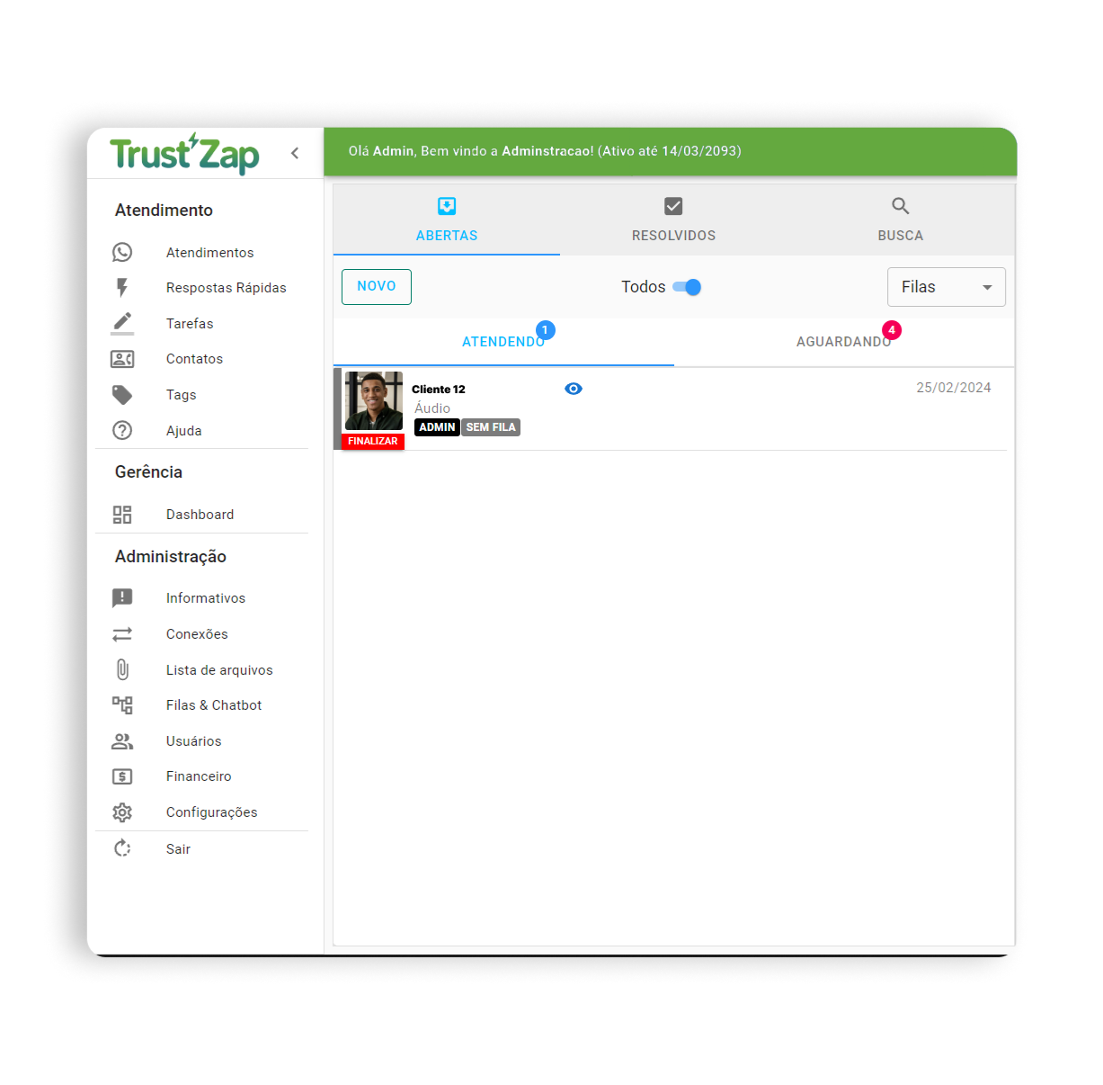 Todos os atendimentos podem ser transferidos para outro atendente..